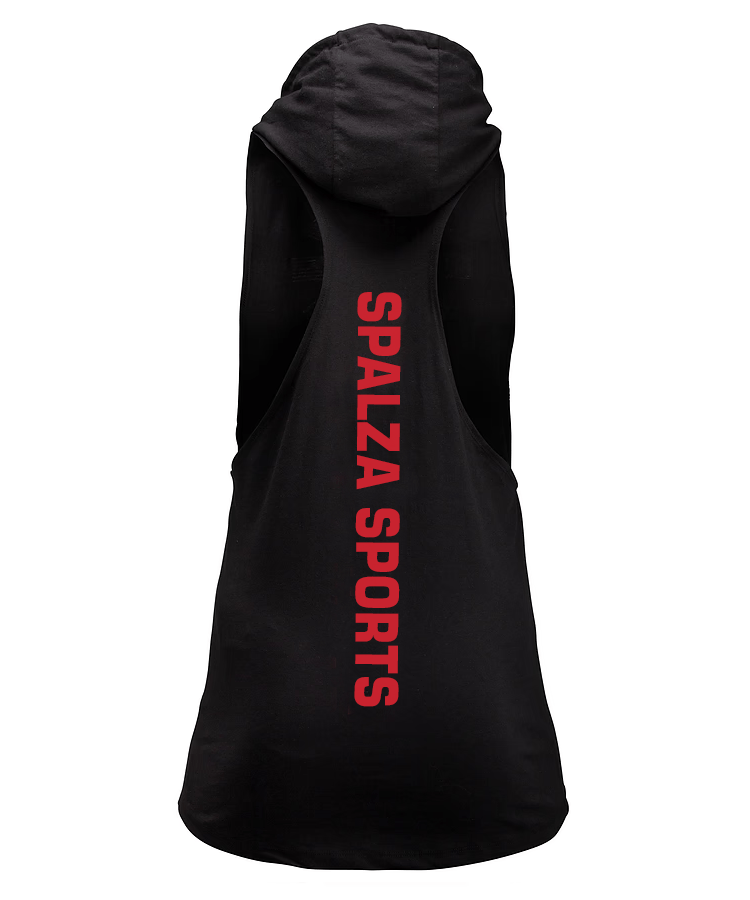 The Black Hooded Top is an ideal tank to show off your big arms. This is great for times when it is too cold to wear a tank top, or when it is too warm to wear a long sleeve hoodie; in this case, wear the Black Hooded Tanktop! This hoodie gives you a free feeling around your arms while keeping your core dry, covered, and comfortable. Engineered SPALZA SPORTS print on the back adds a sense of amazing style and design. This hoodie has kangaroo pockets on the front and drawstring around the hood. It’s time to show the people that you are a member of the SPALZA SPORTS Family where you can choose between the colors Black, Army Green, and Navy.