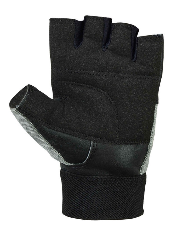 Leather Weightlifting Gloves Bodybuilding Grey-Black.